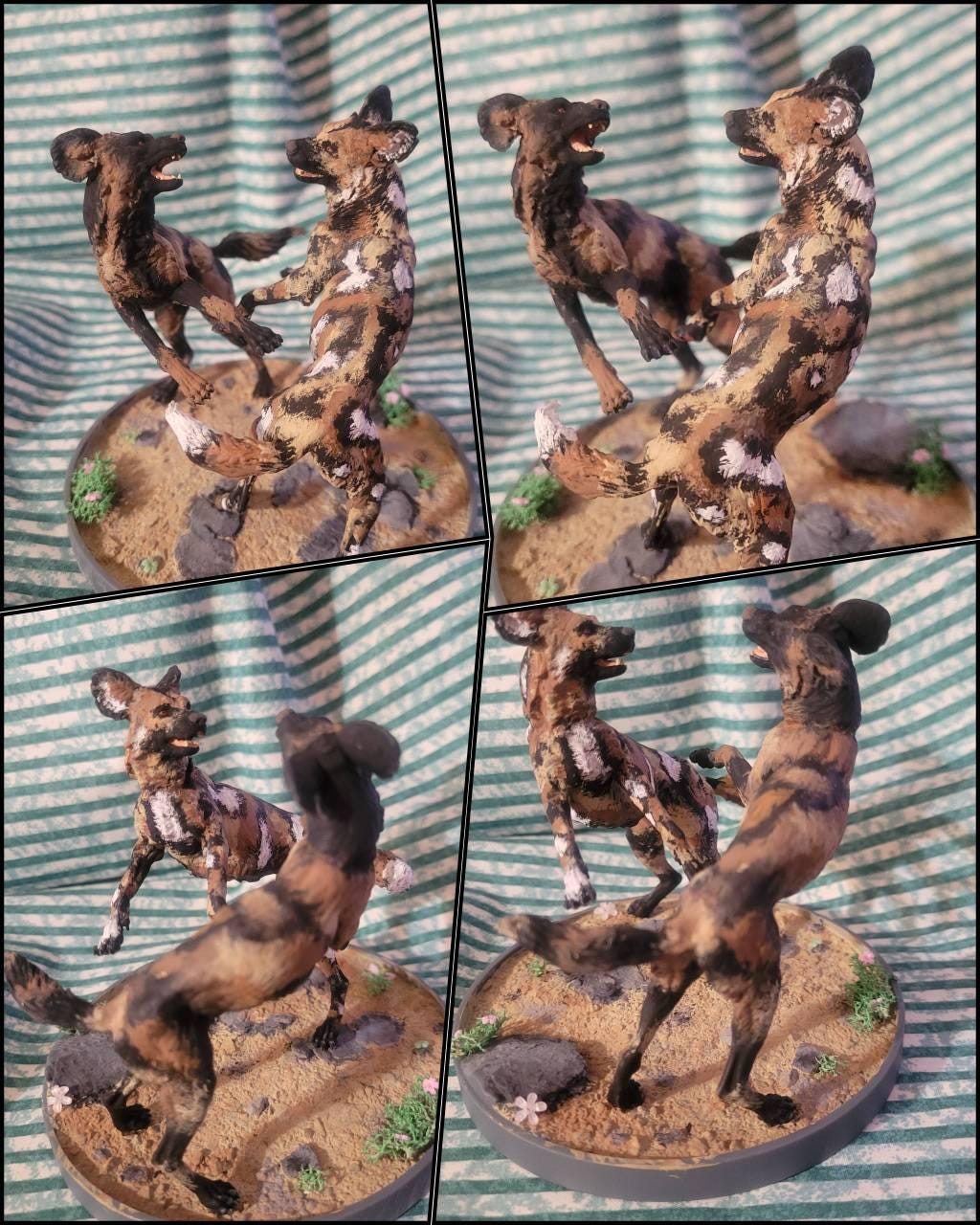 **This listing is for one (2 dogs and a base) UNPAINTED 3D resin print/figurine.** It will be solid grey in color.